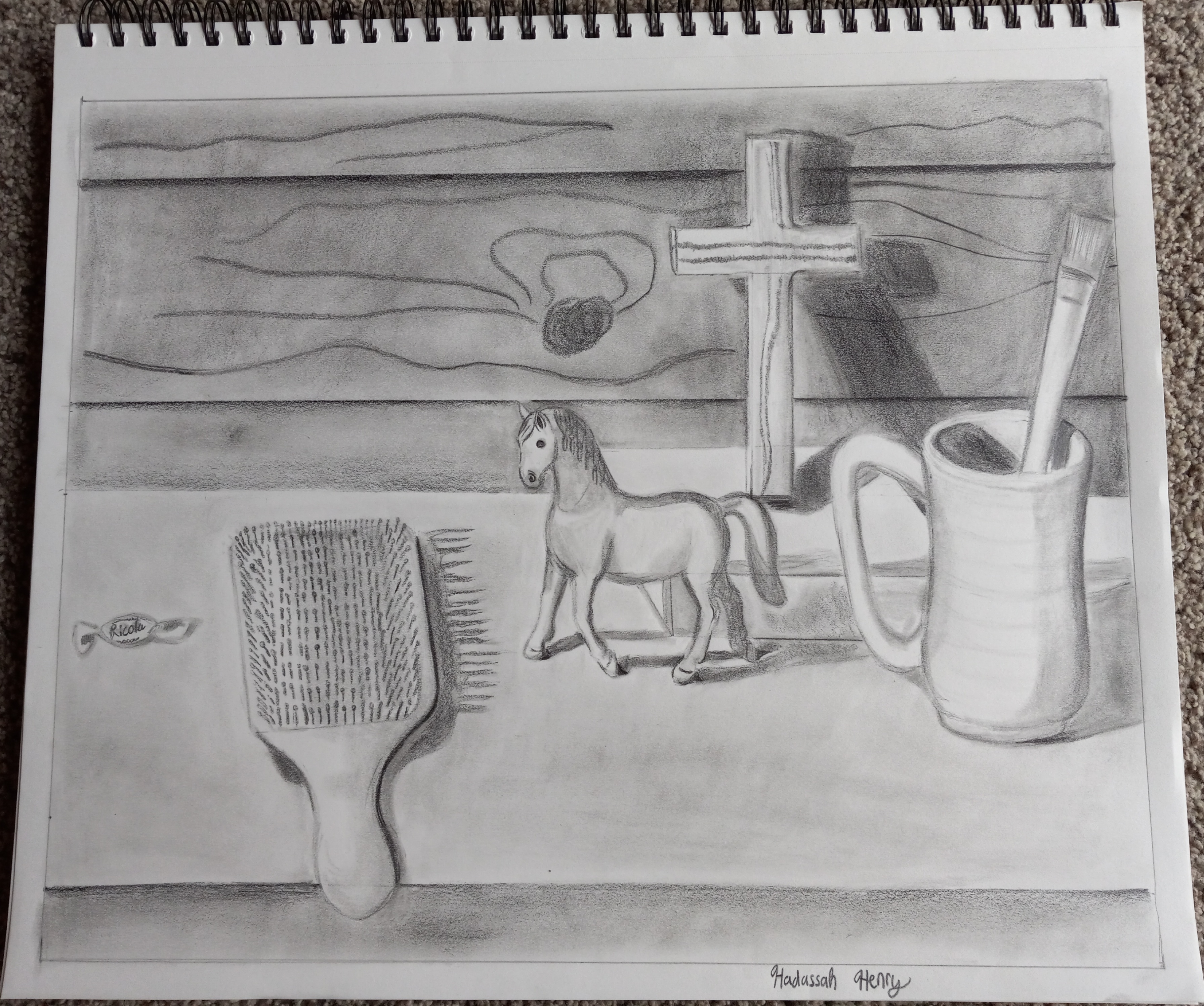 These sketches were compiled while taking Drawing I and II. The challenge I faced when creating them was to show depth and value with charcoal and pencils. Using contour, cross contour, line hatching, and edges was the main focus of the courses. A solution to showing depth was to overlap my still life objects so their shadows carried over one another.